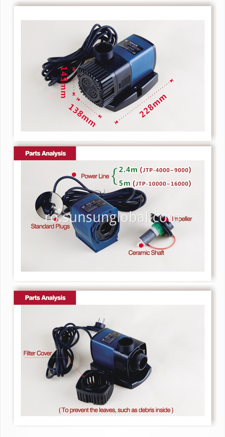 Pompa de apa submersibila 12V DC pentru iaz de circulatie seria SUNSUN JTP