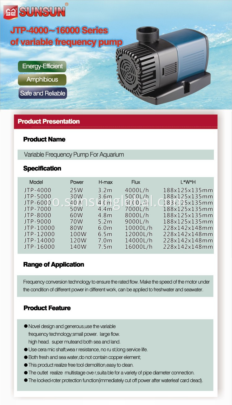 SUNSUN JTP seria iaz de circulație mare 24V fântână submersibilă 12V DC pompă de apă